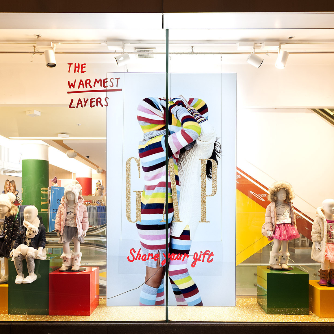 Need inspiration? Gap’s remarkable Christmas window display uses stunning visuals to catch attention. With custom window graphics in festive shapes or slogans, you’ll give passersby a glimpse into the beauty beyond the glass.
