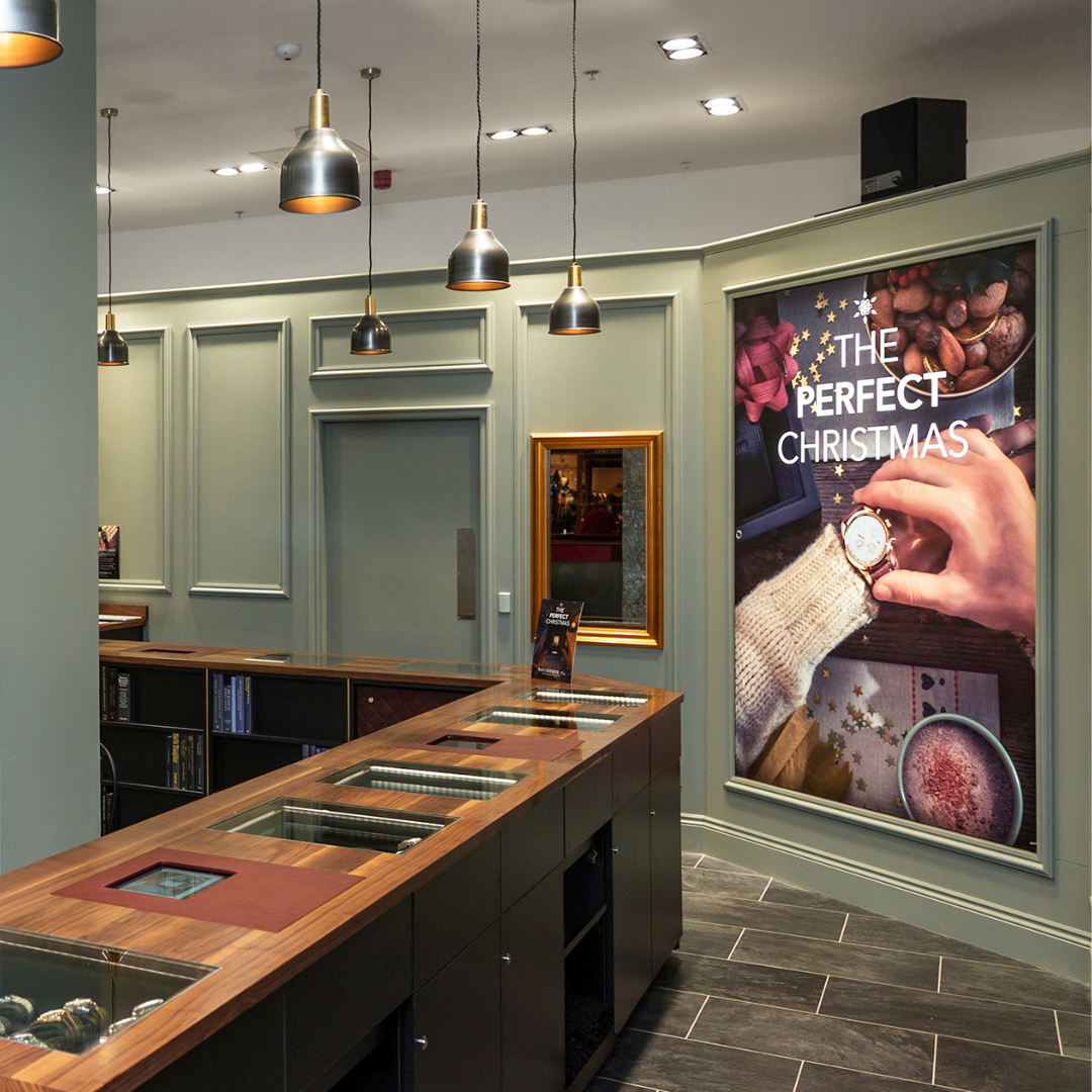 Across seven stores, we manufactured custom lightboxes with interchangeable fabric graphics. This allowed Watchfinder to not only maximise the visibility of its premium gifts, but to instantly switch its campaign messaging once the Christmas rush gave way to the January sales.