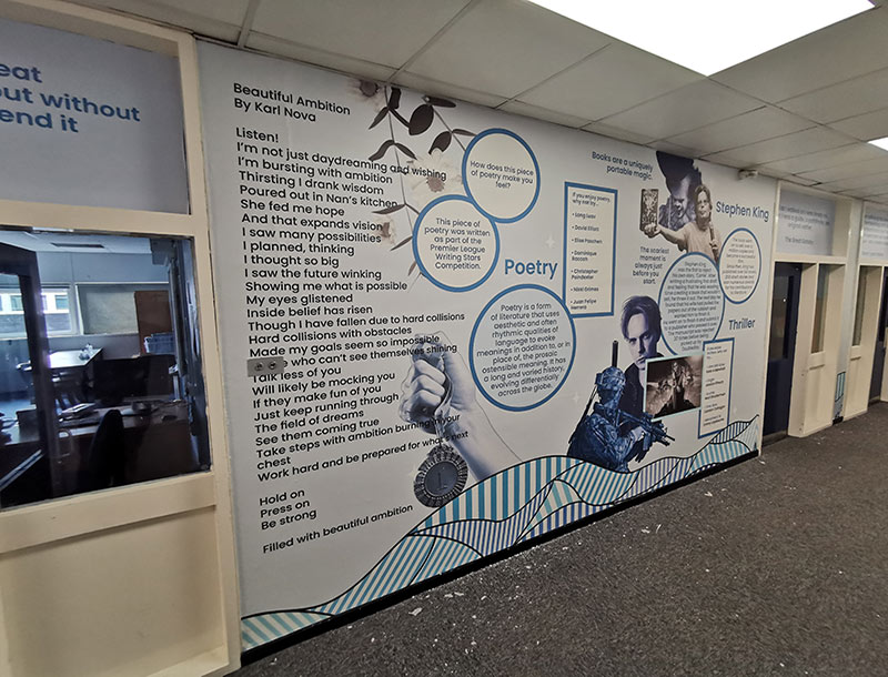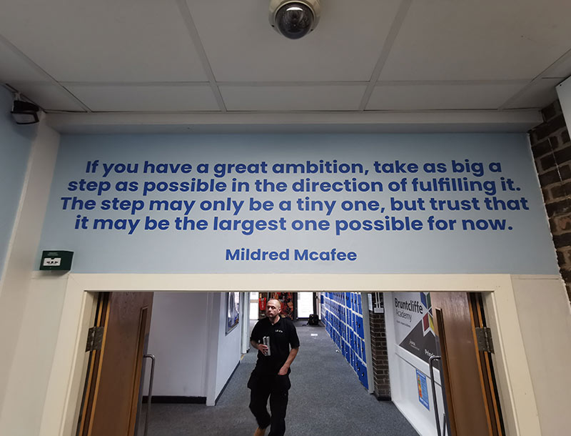 Our product range is expansive and can offer options that suit any requirement. We offered the academy the solution of our durable, high-quality graphics which can withstand high traffic and usage and are perfect for a school environment.