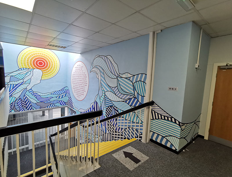 Prior to starting the project, our installation manager conducted a survey of the academy to ensure that we would have control over the project and could identify any issues. Due to the building’s age, some of the walls in the school were quite old and not the usual smooth surface we prefer for wallpaper graphic applications.