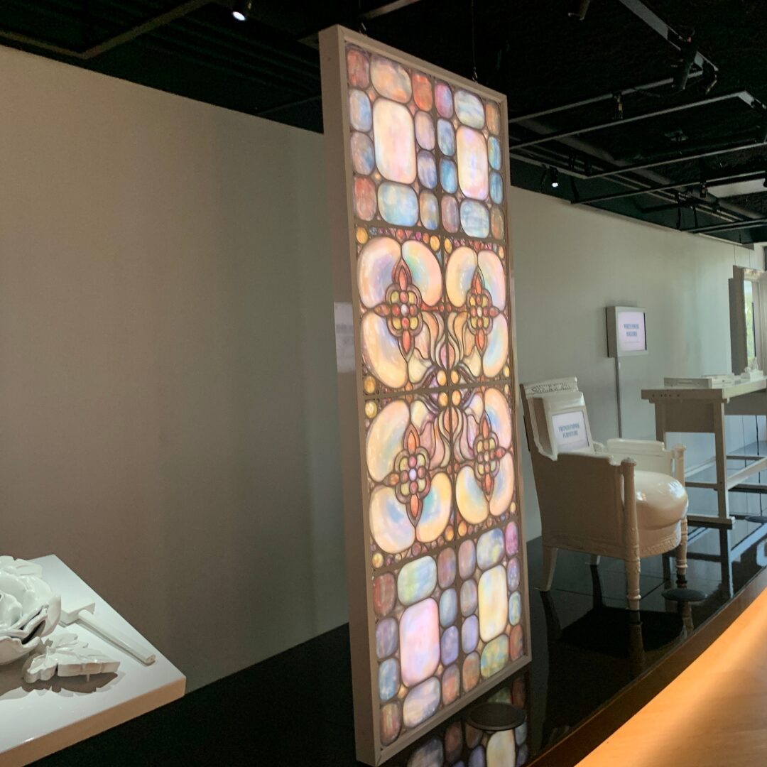 We applied 19 layers of white ink on the acrylic, creating a raised effect reminiscent of the lead in stained glass. The acrylic’s durability ensured the print stayed intact while visitors interacted with the lightbox. Tactile features, like touch activation, allowed the lightbox to turn on and off effortlessly.