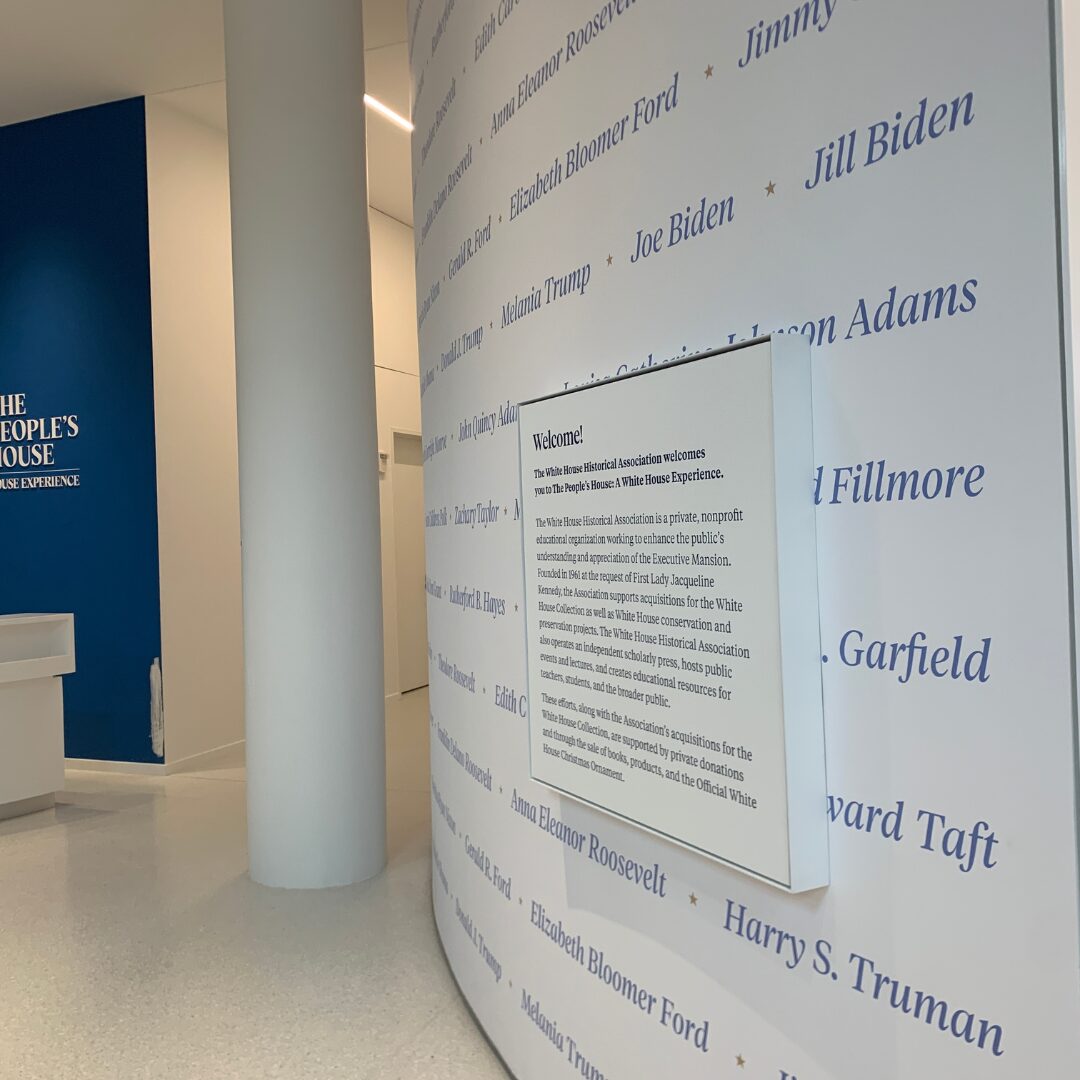 Ana D’escrivan‑Nott, Project Manager at Leach, says, “The People’s House project demanded innovation at every turn. Leach’s expertise in large-format print and project management ensured a resounding success. Every detail, from the intricate prop designs to print quality, aligned with the White House Historical Association’s vision.”