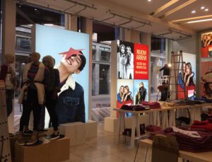 Visually impactful large-format graphics and lightboxes help Gap to stand out from the crowd