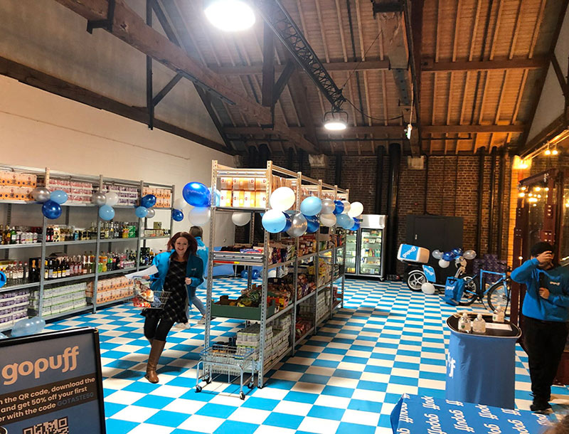 Leach surveyed the event space in London and were able to make informed recommendations to the client. We used our in-house design team to produce artwork; it was key that the colours were completely compatible with GoPuff’s branding and we worked with GoPuff to ensure it met their standards.
