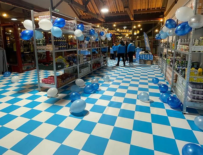 Print Floor is a temporary flooring solution. It is a flexible PVC substrate that is suitable for use with UV, dye sub, solvent, and latex printers. It has slip resistant and fire-rated qualities that make it perfect for retail pop-ups, exhibitions & promotional displays.