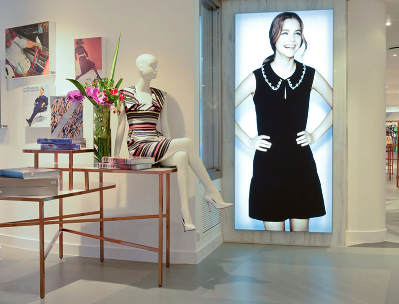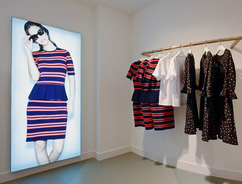 Despite its long heritage, the Jaeger of today wants to convey a contemporary and bright image, which is perfectly suited to large format LED lightboxes. When hanging lightboxes with heritage images were specified for the Regent Street store windows and wall-mounted lightboxes with contemporary fashion images were needed for the store interior, Leach provided the total package.