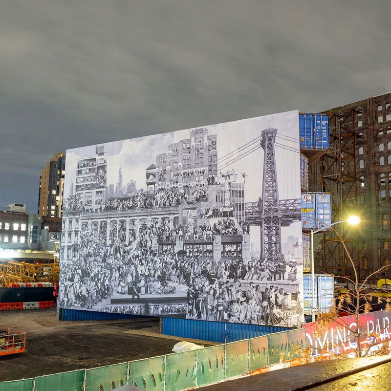 Situated in Domino Park, Williamsburg, the impressive structure has been created to honour the fascinating 20-year career of French photographer, JR – a mysterious figure who started out as a teenage graffiti artist on the streets of Paris.