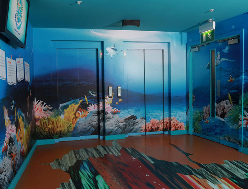 For example, we used non-slip floor graphics and a special water sealant on the walls to prevent dampness from affecting the graphics.