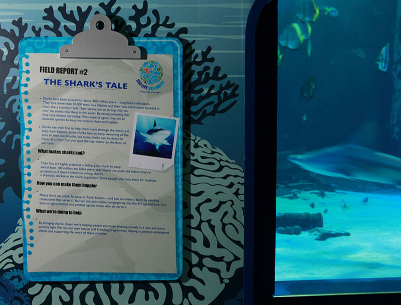 Leach Inspire created a wide-range of safe and hardwearing long-term graphics and signage products to suit the unique conditions within the aquarium.