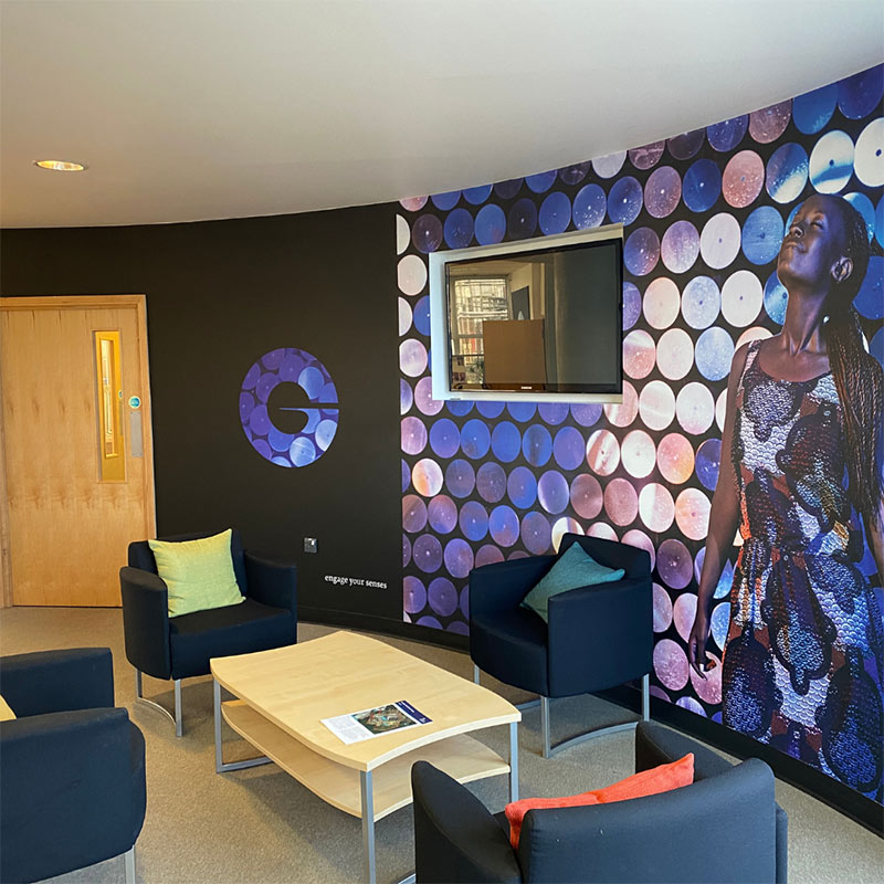 The team surveyed the site and designed all of the artwork, including printed wallpapers, graphic tension systems and external signage, in line with Givaudan’s global brand guidelines. All of these elements were then installed over a period of four days.
