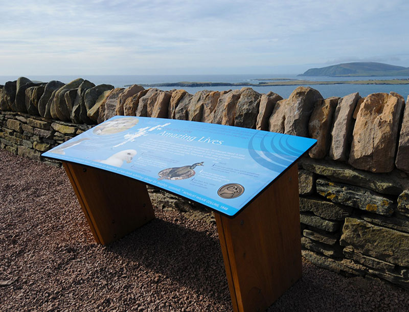 Our team worked with many experts – a geologist, archaeologist, museum curator, war professional and biological records manager – to agree on the location and themes for the panels, then create text and research image content. We also worked with the Northern Lighthouse Board and RSPB representatives.