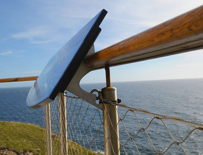 The lighthouse site was exposed to the full force of Atlantic storms, so it was essential that we created structures to cope with all weathers. We achieved this by using one of Leach’s products, Vault – a vandal-resistant, weather-resistant solution which offers supreme-quality graphic displays with a 10-year guarantee.