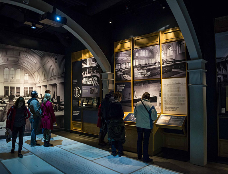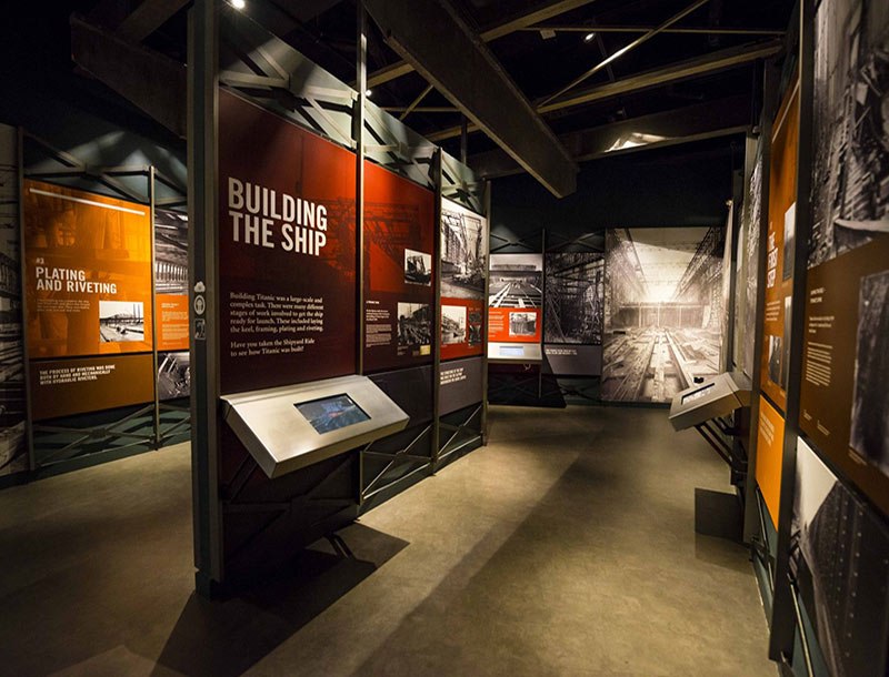 As visitors make their way through the nine interactive galleries of the Titanic Experience, they will find vast areas of Leach’s large-format Titan wall-covering, which was used to create re-enactment scenes of the building of Titanic. This unique, high quality solution was the UK’s first large-format, single drop wall-covering – which typifies the innovative nature of our company.