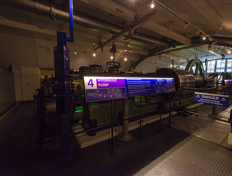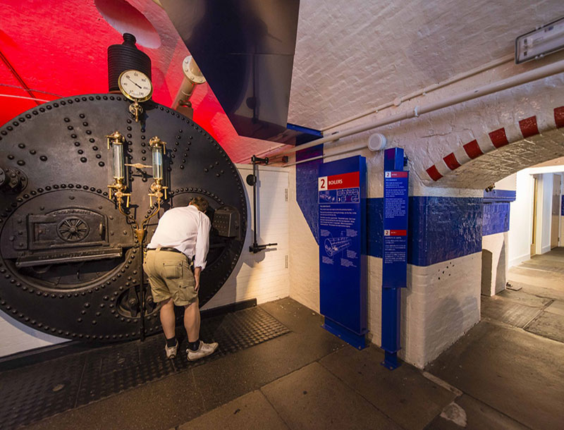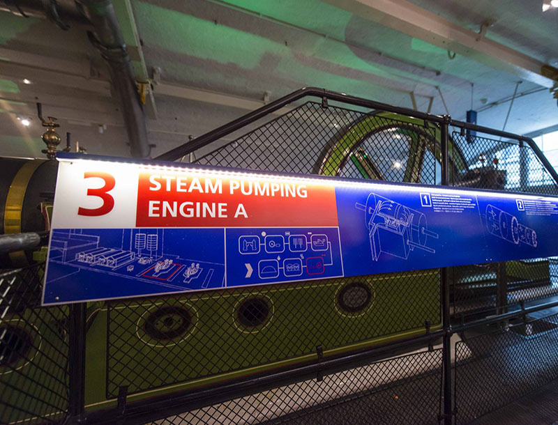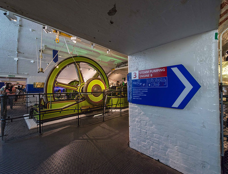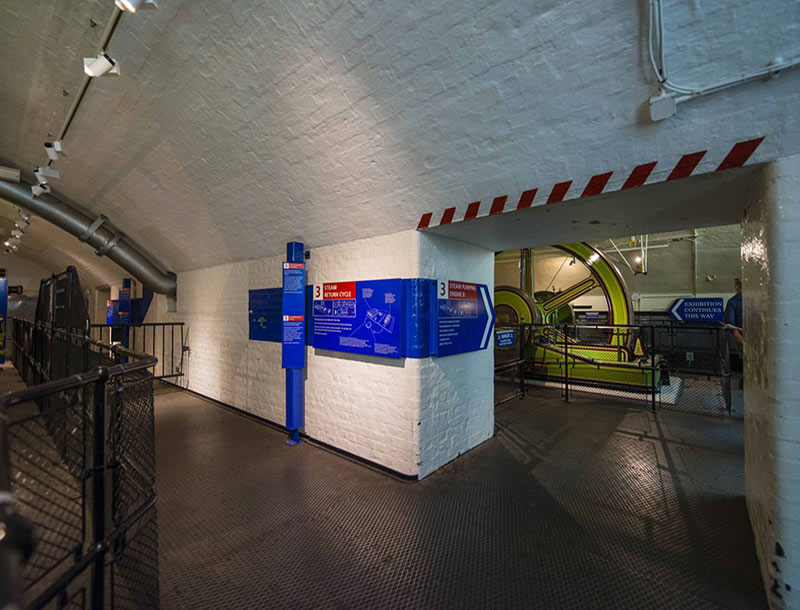 Leach worked alongside the main contractor for this project and provided 3D design and graphics throughout. This was a complex job due to the unique and tight space available to showcase the engine rooms as well as allowing guests to walk through and absorb the exhibition. There were further complexities due to the fact the building sits below water level and all graphics and showcases needed to be sealed and water tight.